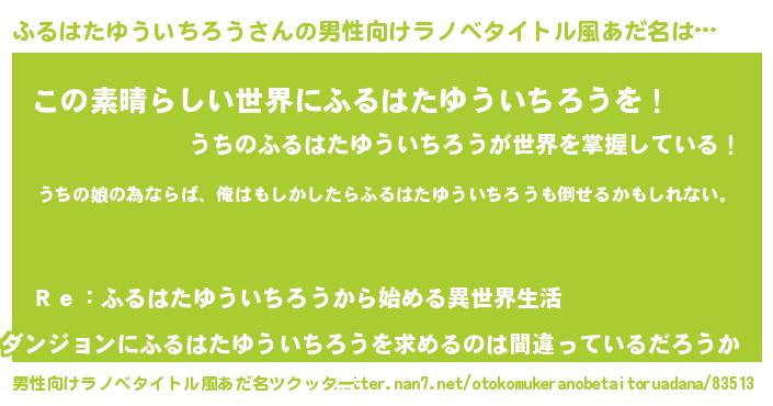 | ファンタジー風あだ名 | 『エターナルフルハタユウイチロウー』 |
