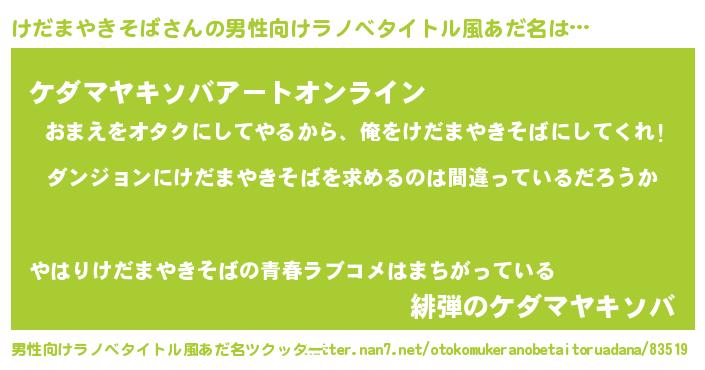 | ポケモン風あだ名 | 『ヒケダマヤキソバ』『ケダチュウ』 |