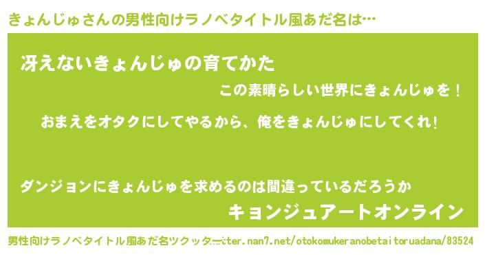 | 女子向けラノベタイトル風あだ名 | 『きょんじゅ夫妻のなれそめ』 |