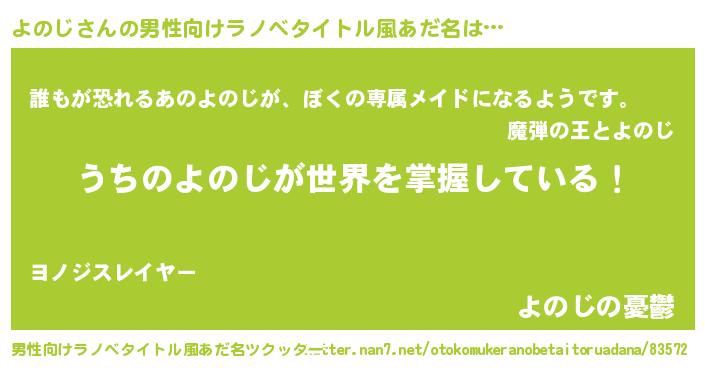 | 女子向けラノベタイトル風あだ名 | 『男装よのじの憂鬱な任務』 |