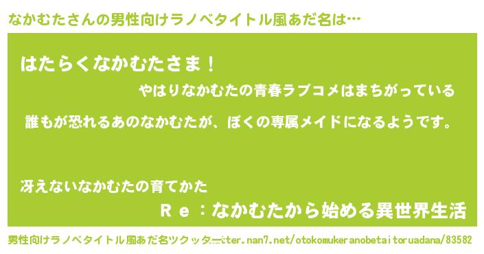 | 女子向けラノベタイトル風あだ名 | 『なかむたの契約王妃』 |