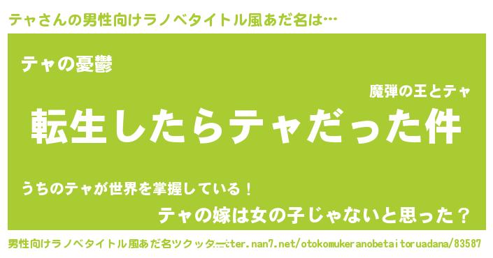 | 胡散臭い通販商品みたいなあだ名 | 『モテモテ間違いなしブレスレット…その名も「テャ」』 |