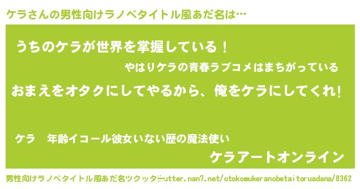 | 女子向けラノベタイトル風あだ名 | 『ケラ夫妻のなれそめ』 |