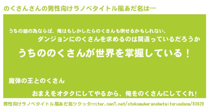 | ヒーロー風カッコイイあだ名 | 『ウルトラのくさんマン』『暗黒騎士ノク』 |