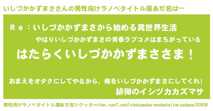 | ヒーロー風カッコイイあだ名 | 『ウルトラ戦士イシヅカカズマサ』 |