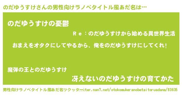 | 女子向けラノベタイトル風あだ名 | 『のだゆうすけ夫妻のなれそめ』 |
