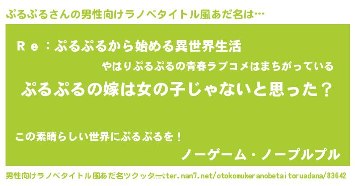 | 意味不明あだ名 | 『とにかく怪しいぷるぷる』 |