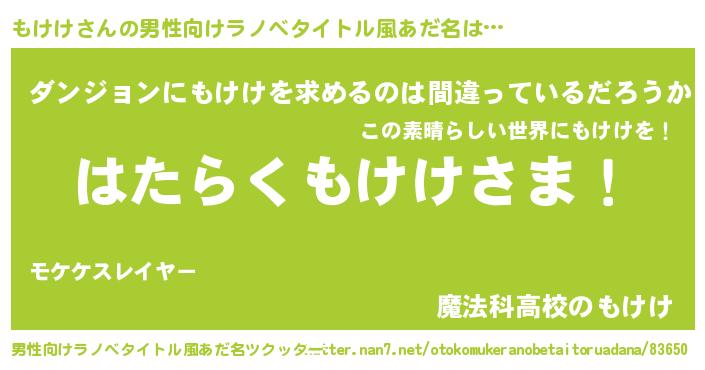 | ヘコむあだ名 | 『もけを』『豆乳』『もけにゅー』 |