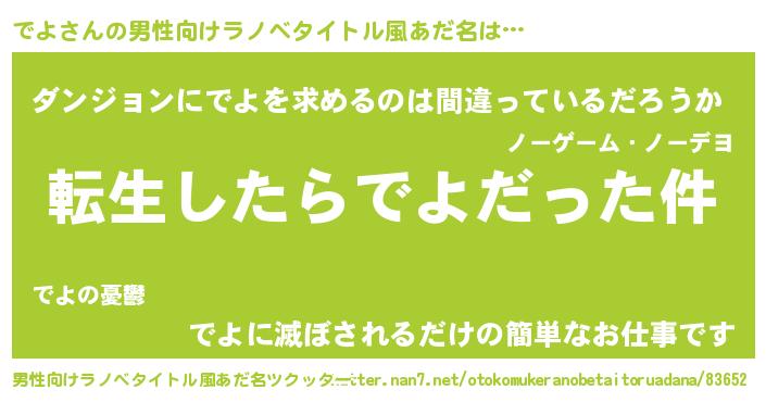 | 女子向けラノベタイトル風あだ名 | 『でよの玉の輿計画!』『死神でよの再婚』 |