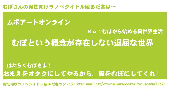 | 女子向けラノベタイトル風あだ名 | 『むぽの契約王妃』『むぽ夫妻のなれそめ』 |