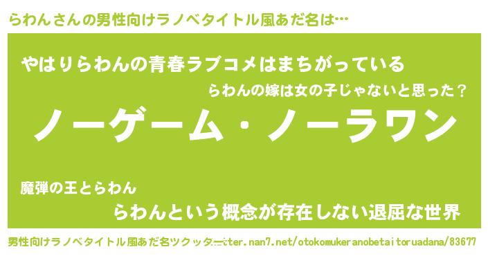 らわんさんの男性向けラノベタイトル風あだ名をツクッター!
