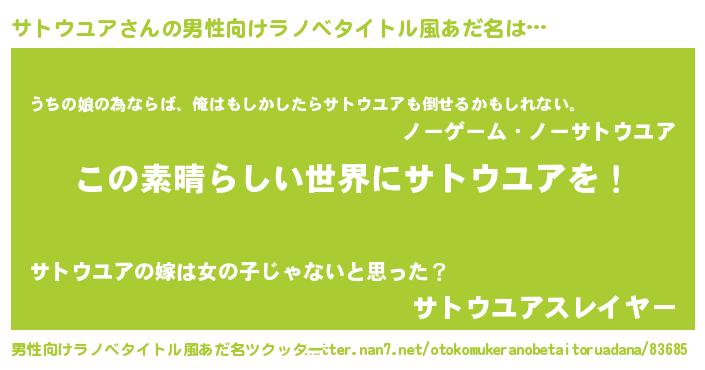 | 意味不明あだ名 | 『住所不定無職サトウユア(74歳)』 |