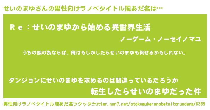 | 意味不明あだ名 | 『せいのまゆフォーエバー』 |