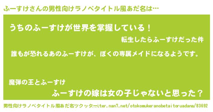 | 胡散臭い通販商品みたいなあだ名 | 『前代未聞の健康食品…その名も「ふーすけ」』 |