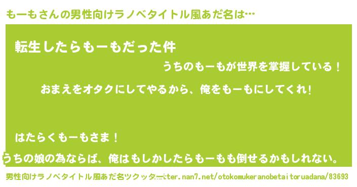 | ヘコむあだ名 | 『豆乳』『もーっちょ』『もーも(笑)』 |