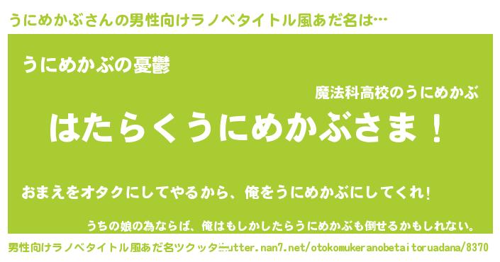 | 女子向けラノベタイトル風あだ名 | 『首の姫と首なしうにめかぶ』 |
