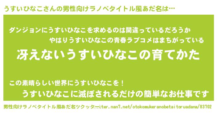 | 女子向けラノベタイトル風あだ名 | 『男装うすいひなこの憂鬱な任務』 |