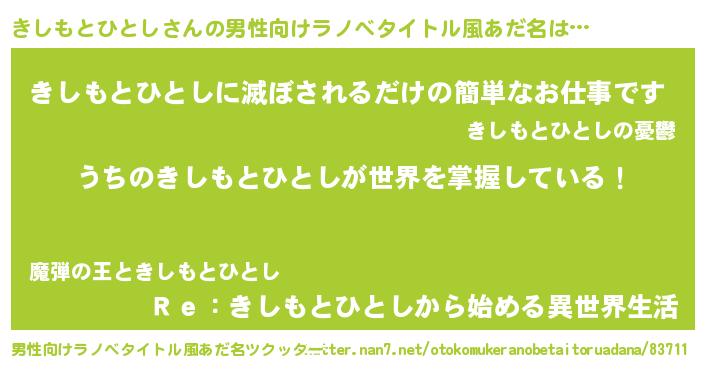 | 女子向けラノベタイトル風あだ名 | 『男装きしもとひとしの憂鬱な任務』 |