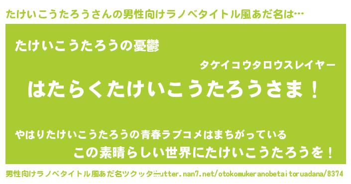 | 肩書あだ名 | 『たけいこうたろうディレクター』 |