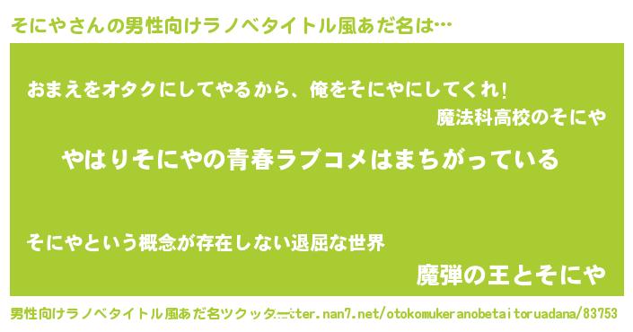 | 意味不明あだ名 | 『そにやフォーエバー』『自称そにや』 |