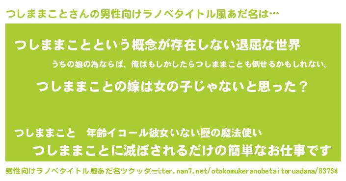 | 意味不明あだ名 | 『とにかく怪しいつしままこと』 |