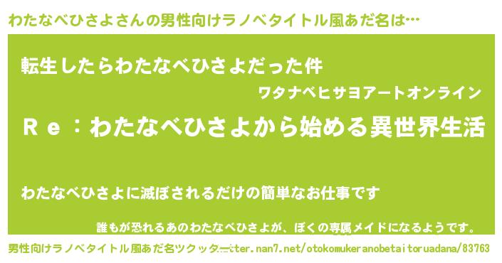 | 女子向けラノベタイトル風あだ名 | 『わたなべひさよストレイドッグス』 |