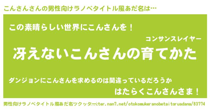 | 意味不明あだ名 | 『住所不定無職こんさん(98歳)』 |