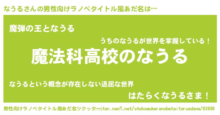 | 女子向けラノベタイトル風あだ名 | 『なうるなんてお断りですっ。』 |