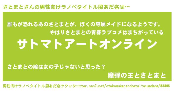 | 胡散臭い通販商品みたいなあだ名 | 『億万長者になれる霊験あらたかなお札…その名も「さとまと」』 |