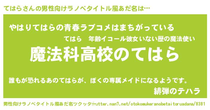 | ファンタジー風あだ名 | 『ゼテハトゥ』『エターナルテハラー』 |