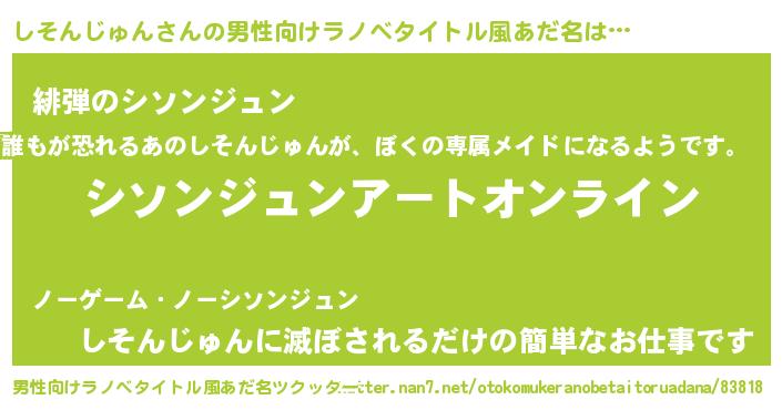 | 女子向けラノベタイトル風あだ名 | 『しそんじゅん姫と円卓の騎士』 |