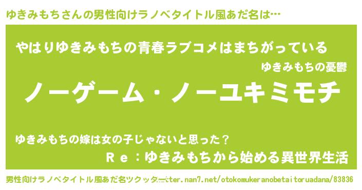 | 女子向けラノベタイトル風あだ名 | 『ゆきみもち恋絵巻』『闇のゆきみもち』 |