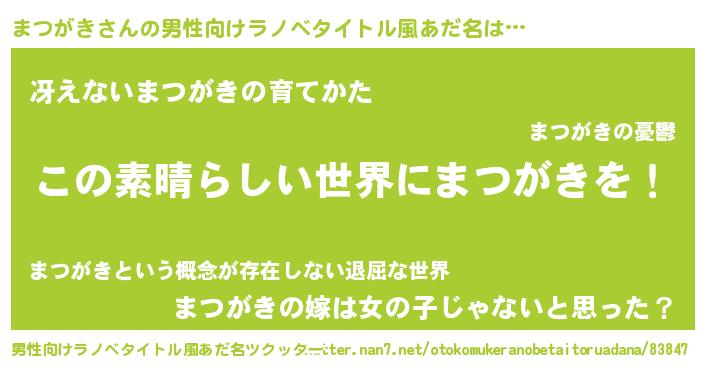 | 女子向けラノベタイトル風あだ名 | 『乙女ゲームの破滅フラグしかない悪役まつがきに転生してしまった…』 |