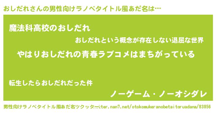 | 女子向けラノベタイトル風あだ名 | 『おしだれの雑貨屋さん』 |