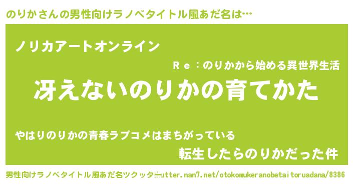 | 胡散臭い通販商品みたいなあだ名 | 『モテモテ間違いなし水晶球…その名も「のりか」』 |