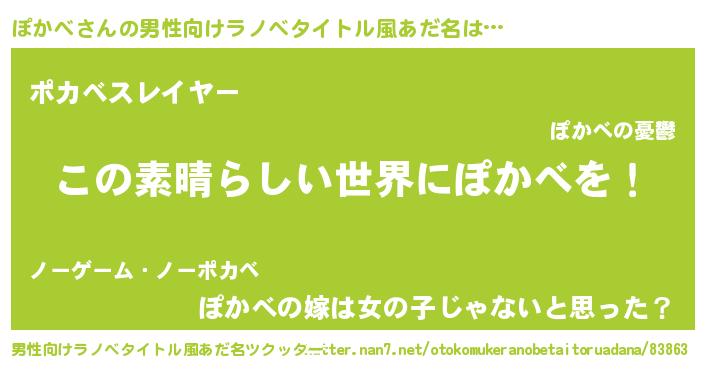 | 胡散臭い通販商品みたいなあだ名 | 『あなたにだけ特別に提供する100年もののヴィンテージワイン…その名も「ぽかべ」』 |