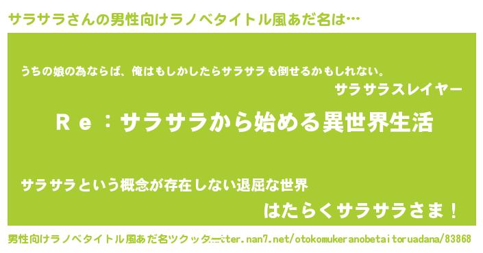 | ファンタジー風あだ名 | 『ゼサラトゥ』『エターナルサラサラー』 |