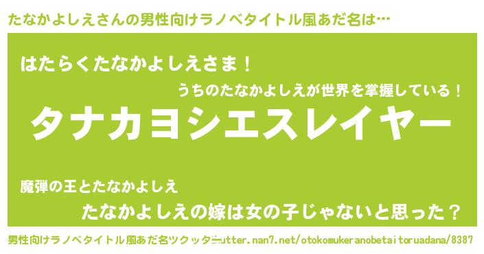 | 肩書あだ名 | 『たなかよしえ中尉』『たなかよしえ塾長』 |