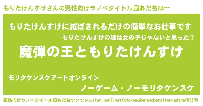 | 意味不明あだ名 | 『住所不定無職もりたけんすけ(86歳)』 |