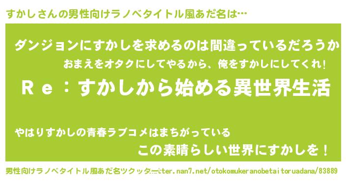 | 女子向けラノベタイトル風あだ名 | 『闇のすかし』『すかしは平凡を望む』 |