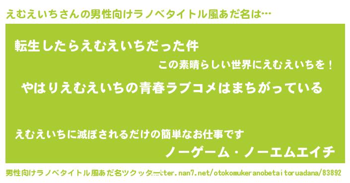 | 女子向けラノベタイトル風あだ名 | 『えむえいちの雑貨屋さん』 |