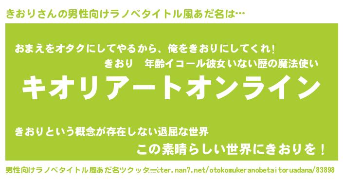 | 胡散臭い通販商品みたいなあだ名 | 『億万長者になれるブレスレット…その名も「きおり」』 |