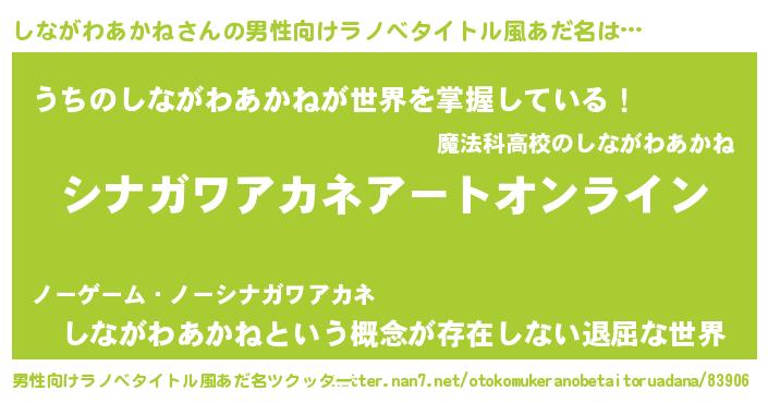 | ヘコむあだ名 | 『しなにゅー』『しながわあかね(笑)』 |