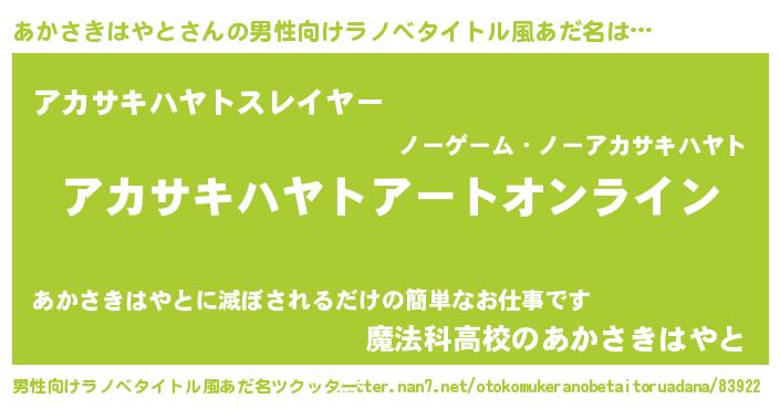| ヒーロー風カッコイイあだ名 | 『スーパーアカサキハヤト』 |