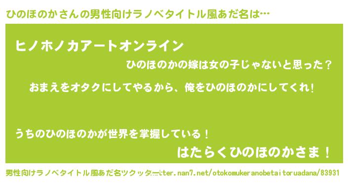 | 女子向けラノベタイトル風あだ名 | 『ひのほのか夫妻のなれそめ』 |