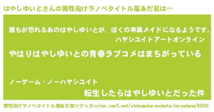 | 女子向けラノベタイトル風あだ名 | 『はやしゆいとの雑貨屋さん』 |