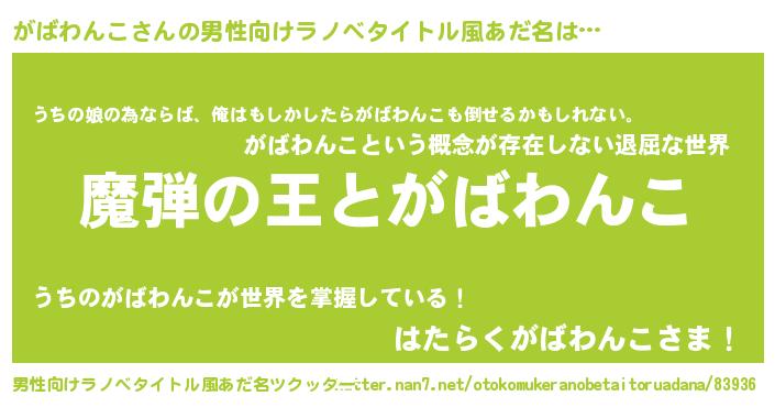 | 胡散臭い通販商品みたいなあだ名 | 『世界中を虜にした世界で10本だけ現存している希少なブランデー…その名も「がばわんこ」』 |