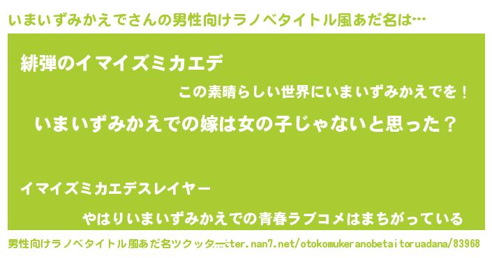 | 女子向けラノベタイトル風あだ名 | 『いまいずみかえで様がみてる』 |