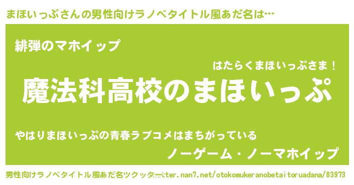 | 胡散臭い通販商品みたいなあだ名 | 『ガンによく効く高麗人参…その名も「まほいっぷ」』 |