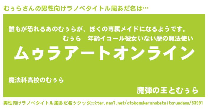 | ヘコむあだ名 | 『むぅもー』『むぅら(笑)』 |